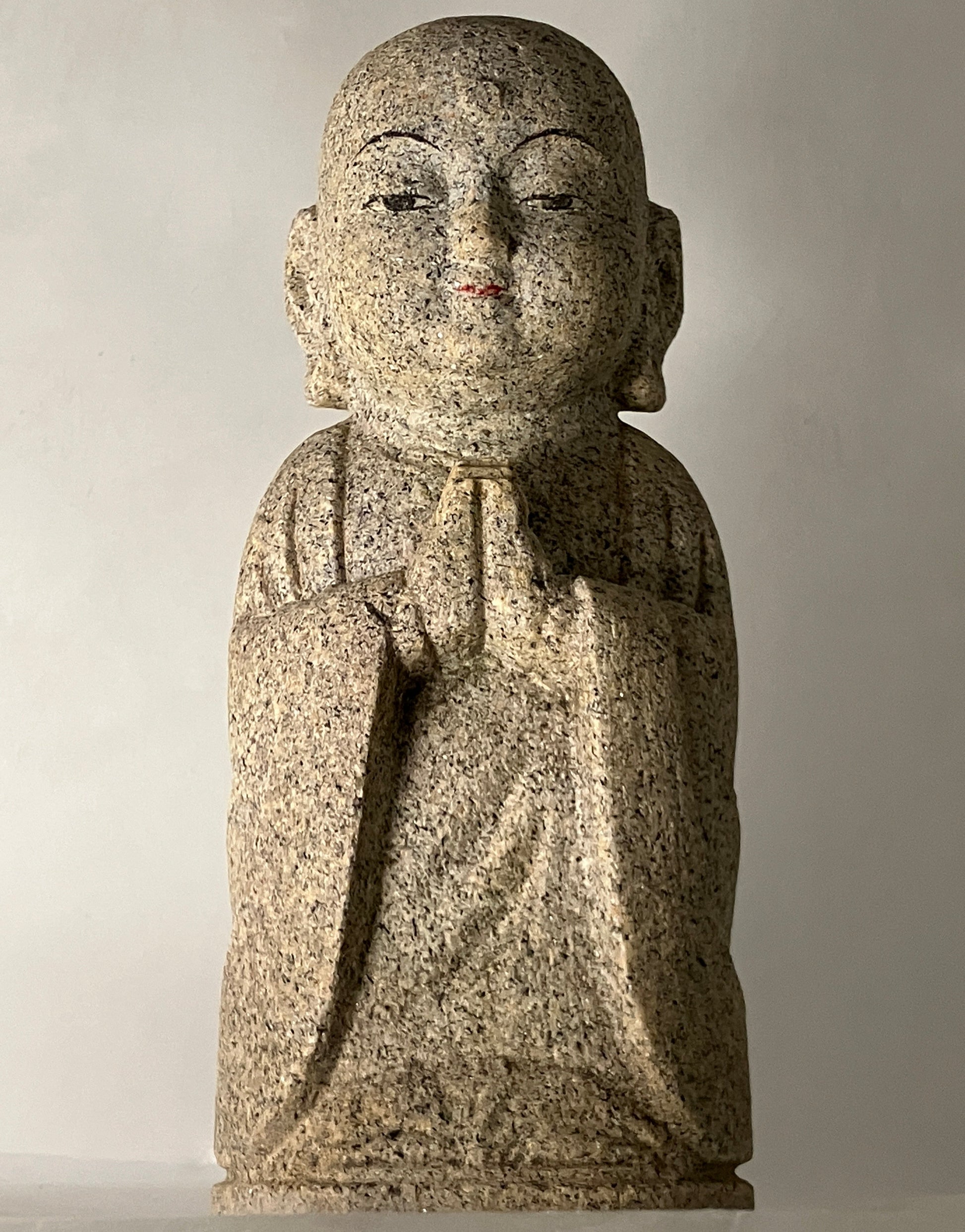 Brown Gasshou Jizo Ojizo-Sama Granite Stone Sculpture Handmade Japan